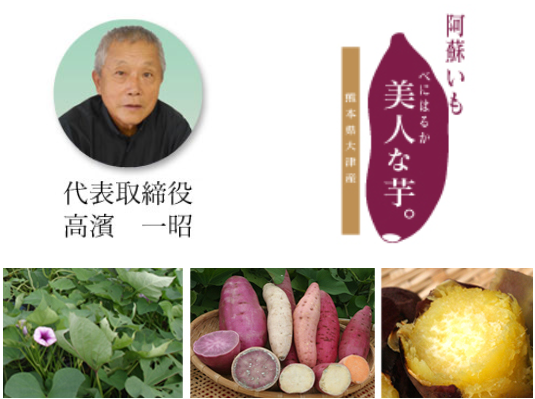 阿蘇の大自然に囲まれた、生き生き タカハマ農園は阿蘇の火山灰 台地に育まれた土壌によって、ミネラルをたっぷり含んだおいしいお芋や季節の果物を精魂込めて栽培し、生産・販売を行っています。